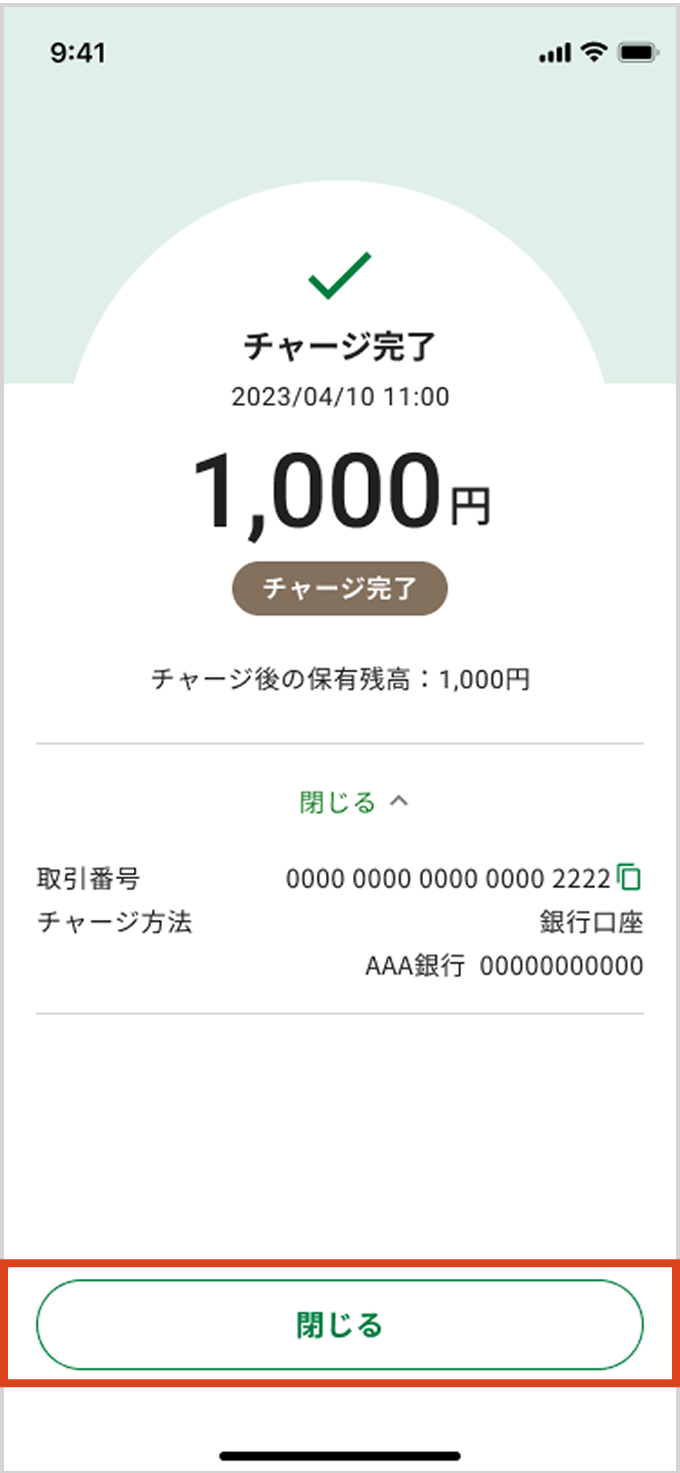 お金のチャージ(入金)は、お客様ご自身の銀行口座から行っていただきます。